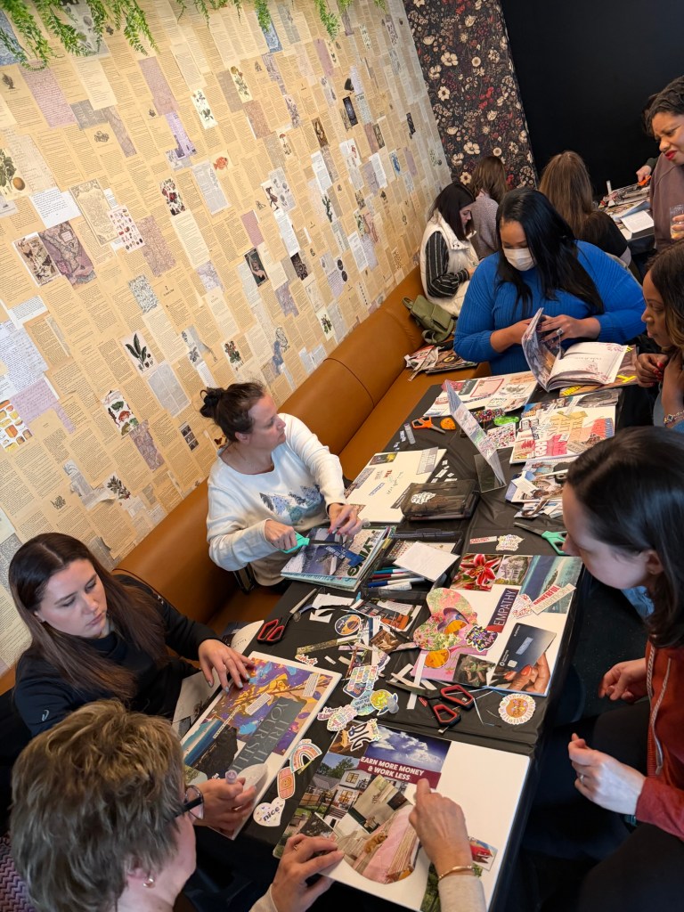 The atmosphere was the perfect combination of cozy and sophisticated—a true testament to the power of community and intentionality. I had the honor of leading the charge, engaging with our participants as they identify their goals and translate their deepest aspirations into a visual roadmap for the future.